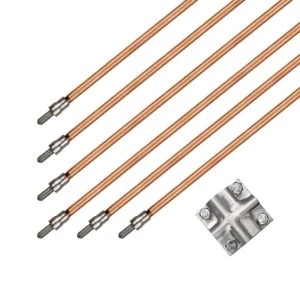 • Uziom pionowy stalowy z powłoką Cu 0,100 mm, kuty z tuleją uszczelniająco-wzmacniającą 1 m, Ø 14,2 mm (nr kat. C0000171C100) – 6 szt.
