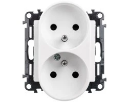 ARIA Gniazdo podwójne z/u z przesłonami torów prądowych biały GP-2URZP/m/00