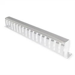 - Umożliwia prowadzenie kabli w wewnętrznej części szafy przez owalne otwory w panelu zarządzania kablami