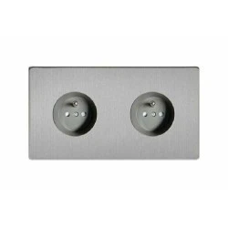 Varilight 2 gniazda STEEL B/K ze stykiem kołkowym stal szczotkowana bez kołnierza