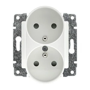 Nazwa: Gniazdo podwójne z uziemieniem i przesłoną torów prądowych, bez ramki