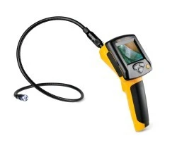 Cechy wyróżniające: wodoszczelna kamera endoskopowa z oświetleniem LED, półsztywny przewód (1m), obraz wyświetlany w kolorach na dużym ekranie przyrządu z możliwością przesłania obrazu do odbiornika TV lub laptopa, obrót obrazu o 180stopni jednym naciśnięciem przycisku, zasilanie akumulatorowe.