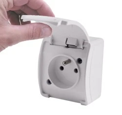 ? Przedmiotem oferty jest 1 szt. Gniazdo pojedyncze bryzgoszczelne z białą klapką