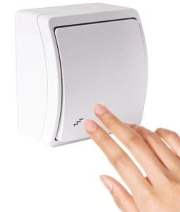 ? Łącznik Schodowy Natynkowy należy do serii hermetycznych gniazd oraz łączników KOALA.