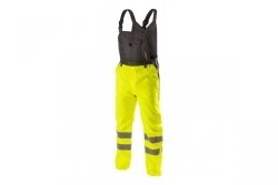 Męskie ogrodniczki ostrzegawcze przeciwdeszczowe wykonane z najwyższej jakości materiałów. Wyróżniają się lekkością i przepuszczalnością powietrza, zapewniają maksymalny komfort noszenia. Chronią przed deszczem (wodoodporność na poziomie 2000 mm H2O) i wiatrem. Zwiększają bezpieczeństwo podczas przebywania w warunkach ograniczonej widoczności np. w trakcie przemieszczania w nocy oraz podczas złych warunków pogodowych np. w czasie deszczu lub mgły. Kolorystyka produktu jest skierowana do branż, w których pracownicy muszą być widoczni, między innymi do osób budujących drogi, ulice, rafinerie, pracujących w portach, na platformach wiertniczych, szybach wydobywczych, lotniskach czy w ratownictwie górskim.