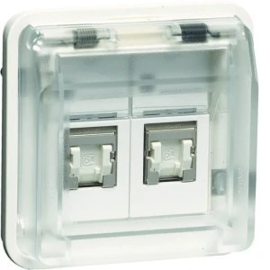 W.1 Moduł gniazdo komp. 2‑kr UAE 8/8‑bieg. z pokrywą, kat. 6/klasa E IP55, biały WNA227B