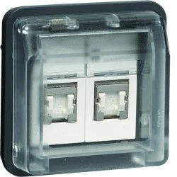 W.1 Moduł gniazdo komp. 2‑kr UAE 8/8‑bieg. z pokrywą, kat. 6/klasa E IP55, szary WNA227