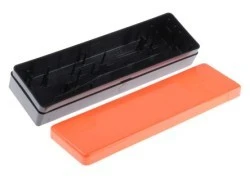 Pojemnik do bezpiecznego przechowywania do bezprzewodowego lutowania żelaza. Odpowiednie do przechowywania bezprzewodowego żelazka o numerze katalogowym ; 545-008 545-008 podczas transportu i użytkowania Żelazo może być składowane natychmiast po użyciu Miejsce na 3 końcówki i gąbkę do czyszczenia oraz śrubokręt w zestawie z żelazkiem W podstawie znajduje się część do wyłamania, która umożliwia ładowanie baterii 12 V przewodu, nr kat ; 547-515 547-515 , gdy znajduje się w pudełku