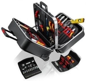 - Wyposażona w 14 narzędzi KNIPEX, łącznie 63 markowych narzędzi, częściowo przetestowane przez VDE zgodnie z normą DIN EN 60900