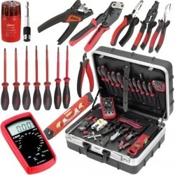 ? Bardzo bogate wyposażenie, między innymi Multimetr Ręczny Cyfrowy, Szczypce, Wkrętaki i wiele innych.