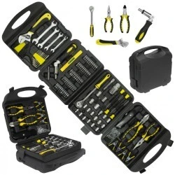 Aż 117 elementów umieszczonych w walizce. Solidność, pewność i ergonomia. Zestaw w którym umieszczono kilka wyjmowanych kaset, obejmuje zarówno: klucze płaskie, nasadowe, grzechotkę, zestaw szczypiec, zaciski, imbusy, nóż, a także wkrętaki i końcówki do bitów. Mając wszystkie narzędzia umieszczone w jednym miejscu, znalezienie tego najbardziej potrzebnego zajmuje tylko chwilę. Polecamy ten produkt wszystkim, dla których liczy się wysoka jakość i dobra cena.