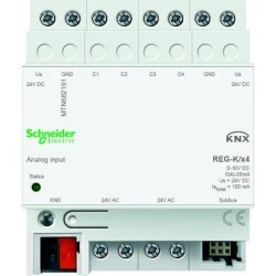 Wejście analogowe REG-K poczwórne, jasnoszary. rodzina produktów: KNX - typ produktu: wejście analogowe - przeznaczenie urządzenia: system magistralny KNX - typ magistrali: KNX. Zalety: System KNX Schneider Electric proponuje jedno kompleksowe rozwiązanie osadzone w międzynarodowych standardach i produkowane przez wielu producentów, oferujące maksymalną elastyczność, komfort, bezpieczeństwo i efektywność instalacji elektrycznej zwłaszcza w przypadku nowych budynków. Idea KNX jest tak prosta, że aż genialna. KNX łączy wszystkie główne funkcje dotyczące zarządzania instalacją elektryczną w budynku, a mianowicie oświetlenie, ogrzewanie, klimatyzacja które to są połączone w inteligentny system, który pomaga obniżyć koszty operacyjne wynikające w znacznej oszczędności energii. System KNX zwiększa elastyczności instalacji i jej dostosowanie do przyszłych, zmieniających się w czasie funkcji budynku.... Zastosowanie: Rozwiązania KNX Schneider Electric są adresowane do budynków komercyjnych, jak również wysokiej klasy rezydencji:, Budynki biurowe, Budynki użyteczności publicznej, Hotele, Szkoły, Szpitale, Sklepy i centra handlowe, Rezydencje i apartamenty -. Zarządzanie funkcjami budynku dzięki KNX jest jednym z najbardziej efektywnych wariantów zmniejszenia konsumpcji energii i poprawy efektywności jej zużycia. Szczególnie w przypadku kompleksów biurowych, KNX uwidacznia swój potencjał....