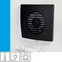 Wentylator domowy Vulkan RS100 Onyx przewód z wtyczką, kontrolka LED, fi 100 mm, kolor czarny