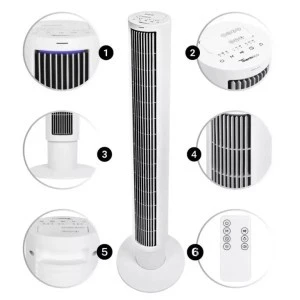 Wentylator kolumnowy z pilotem w kolorze białym o mocy 60W