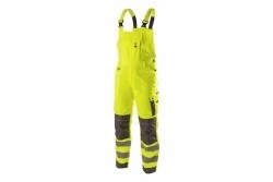 Męskie ogrodniczki ostrzegawcze wykonane z najwyższej jakości materiałów. Wyróżniają się lekkością i przepuszczalnością powietrza, zapewniają maksymalny komfort noszenia. Zwiększają bezpieczeństwo podczas przebywania w warunkach ograniczonej widoczności np. w trakcie przemieszczania w nocy oraz podczas złych warunków pogodowych np. w czasie deszczu lub mgły. Żółta kolorystyka produktu jest skierowana do branż, w których pracownicy muszą być widoczni, między innymi do osób budujących drogi, ulice, rafinerie, pracujących w portach, na platformach wiertniczych, szybach wydobywczych, lotniskach czy w ratownictwie górskim.