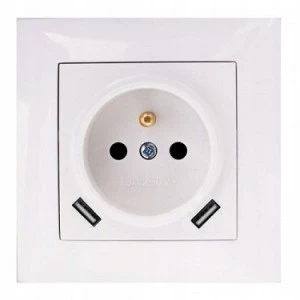 AS Gniazdo pojedyncze z uziemieniem z przesłonami torów prądowych, z ładowarką USB A+C biały GP-1GZPUSBAC/m/00