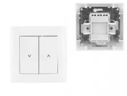 ✔️ Łącznik żaluzjowy pojedynczy wyposażony w dwa przyciski. Stosowany do sterowania roletami i żaluzjami (podnoszenie/opuszczanie).