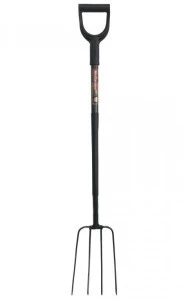 Widły (gable) gospodarcze do przerzucania kompostu, obornika, cienkie zęby, stal węglowa hartowana do 46 HRC, trzon metalowy uchwyt DY