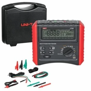 UT593 to cyfrowy wielofunkcyjny miernik do pomiarów w instalacjach elektrycznych przeznaczony dla elektryków. UT593 to kompleksowy tester bezpieczeństwa instalacji elektrycznych. Pozwala na pomiar izolacji, impedancji pętli zwarcia z wyzwalaniem i bez wyzwalania wyłączników RCD, impedancji linii, ciągłości przewodów ochronnych i wyrównawczych, test prądu wyzwolenia i czasu zadziałania wyłączników RCD różnicowo-prądowych, wartość napięcia ac, oraz wyświetla kierunek wirowania faz.