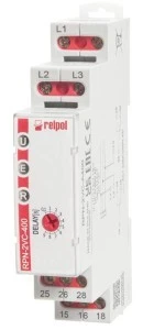 Wielofunkcyjne przekaźniki nadzorcze (nadzór napięcia AC w sieci 3-fazowej - 3~ 400 V lub 3(N)~ 400/230 V). 2 zestyki przełączne. Nadzór przekroczenia progu Umin/Umax, zaniku fazy, kolejności faz. Funkcja histerezy. Nastawa czasu opóźnienia wyłączenia. Napięcie zasilania AC = napiecie nadzorowane. Bez przewodu neutralnego. Ustalone progi przełączania.