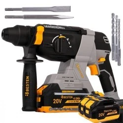 BESTEN Młotowiertarka BE0002904 to połączenie mocy udaru, mobilności i kompletnego zestawu gotowego do pracy od razu po rozpakowaniu.