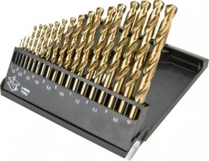 Zestaw wierteł do metalu GRAPHITE (nr ref. 57H199) o średnicach od 1.0 do 10.0 mm wykonanych ze stopu stali szybkotnącej 9341. Dodatkowe pokrycie warstwą azotku tytanu pozwala na obniżenie oporów skrawania i zachowanie wysokiej jakości wierconych otworów szczególnie w trakcie wiercenia otworów przy pomocy automatów wiertarskich. Kąt wierzchołkowy 135° i korekta ścinu umożliwiają łatwe nawiercanie otworów bez punktowania. Idealnie nadają się do wiercenia w stali żeliwie elementach wykonanych z metali kolorowych (miedź aluminium mosiądz).