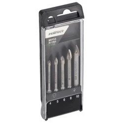 Komplet wierteł do szkła powinien znaleźć się na wyposażeniu każdego profesjonalisty. Będzie potrzebny przy pracach szklarskich, glazurniczych, produkcji, a także przy specjalistycznych naprawach. Komplet zawiera pięć wierteł o średnicach od 4 do 10 milimetrów. Wszystkie są spakowane do pudełka z tworzywa sztucznego, dlatego nie zgubią się w warsztacie czy skrzynce narzędziowej. Trzpienie poddane utwardzaniu termicznemu zapewniają znakomitą odporność na pękanie i odkształcenie. Część roboczą wykonano z podwójnej widii z węglika wolframu o twardości 89,5 HRC. Wiertło jest wyposażone w uchwyt sześciokątny, który można umieścić w wiertarkach i wkrętarkach. Zapobiega to samoczynnemu obracaniu się elementu w uchwycie. Duża ostrość końcówki sprawia, że każdy odwiert jest precyzyjny i ma równe brzegi.