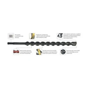 Wiertło udarowe z uchwytem SDS-plus z dwoma ostrzami tnącymi do zastosowań ogólnobudowlanych.