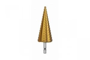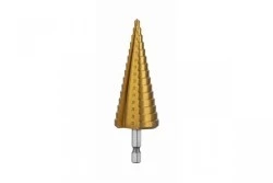 Wiertło stopniowe przystosowane do wiercenia w różnych rodzajach stali, metalach nieżelaznych, miedzi, mosiądzu i aluminium, stali nierdzewnej, tworzywach sztucznych oraz drewnie. Umożliwia wiercenie precyzyjnych otworów. Znajdzie zastosowanie w zakładach blacharskich, ślusarskich, warsztatach samochodowych czy w pracy instalatorów i elektryków. Do użytku profesjonalnego.