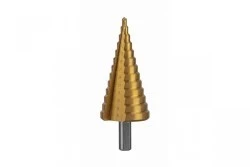 Wiertło stopniowe przystosowane do wiercenia w różnych rodzajach stali, metalach nieżelaznych, miedzi, mosiądzu i aluminium, stali nierdzewnej, tworzywach sztucznych oraz drewnie. Umożliwia wiercenie precyzyjnych otworów. Znajdzie zastosowanie w zakładach blacharskich, ślusarskich, warsztatach samochodowych czy w pracy instalatorów i elektryków. Do użytku profesjonalnego.