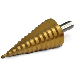 Wiertło stopniowe MN-61-802 przeznaczone jest do wiercenia i rozwiercania otworów w cienkościennych blachach stalowych, aluminiowych i nierdzewnych. Wykonane z wytrzymałej stali szybkotnącej M2 i pokryte powłoką TiN, gwarantuje dużą odporność na ścieranie i przegrzewanie podczas pracy. Umożliwia wiercenie w materiałach do 3 mm grubości bez konieczności zmiany narzędzia.