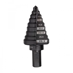 Zalety wierteł stopniowych w porównaniu z wietłami tradycyjnymi: - Jedno wiertło wykonuje otwory o różnej średnicy - Więcej możliwości, a mniej noszenia! - Najlepszy sposób na powiększenie istniejącego otworu. - Rdzeń jest nieskręcony i grubszy, a zatem mniej podatny na złamanie. - Dokładniejsze pozycjonowanie otworu, gdyż końcówka wierci natychmiast. - Otwory bez zadziorów, niepotrzebny rozwiertak. - Wiercenie w plastiku bez pęknięć.