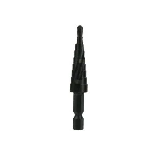 Profesjonalne wiertło wielostopniowe wykonane z wysokogatunkowej szybkotnącej stali HSS M2. Zalecane do obróbki blach węglowych, stopowych i metali nieżelaznych, tworzyw termoplastycznych i termoutwardzalnych.