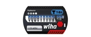Dotychczas podczas zakupu bitów nie bylo calkiem jasne, jakie zastosowanie ma dany typ bitu. Firma Wiha polozyla kres tej róznorodnosci stosowanych maszyn, polaczen srubowych i duzego wyboru zróznicowanych bitów. Dzieki rewolucyjnej koncepcji bitów firmy Wiha obecnie tylko ksztalt lba sruby odgrywa role podczas wyboru odpowiedniego bitu.Tym samym bit T nadaje sie idealnie do polaczen srubowych wykonywanych za pomoca srub z lbem T-ksztaltnym o kacie 90° pomiedzy gwintem a lbem. Opatentowana, wydluzona strefa skretna sprawia, ze bit nadaje sie równiez do wkretarek udarowych, zapewniajac 120x dluzsza zywotnosc w porównaniu do bitów standardowych firmy Wiha. Ponadto dzieki pokryciu lakierem luminescencyjnym mozna szybko i latwo odnajdywac kolorowe bity nawet w ciemnosci przy uzyciu lampy UV. Przez to zmniejsza sie liczba zgubionych bitów, a tym samym mozna oszczedzic sobie niepotrzebnych kosztów przy kupowaniu nowych. Bity wraz z uchwytem na bity sa rozmieszczone w zestawie FlipSelector w sposób przejrzysty i zwarty, dzieki czemu mozna je wyjmowac latwo i szybko.