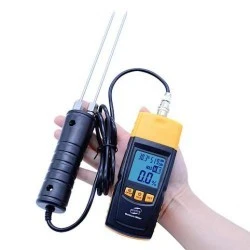 Precyzyjne urządzenie do pomiaru wilgotności drewna, trocin, ziół, papieru, tytoniu, itp. Wyposażone w wbudowaną sondę pomiarową oraz zewnętrzna - dodatkową sondę dzięki czemu można zmierzyć wilgotność wszystkich luźnych materiałów jak np. trocin.