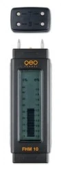 Wilgotnościomierz FHM 10 do drewna i materiałów budowlanych niemieckiej marki geo-FENNEL przeznaczony dla profesjonalistów jak i użytkowników domowych. Urządzenie dokonuje pomiaru wilgotności za pomocą wbudowanych igieł, a wynik prezentowany jest na podwójnym wyświetlaczu. Mocną obudowę wykonano z tworzywa sztucznego.Cechy wyróżniające: uniwersalny przyrząd do pomiaru wilgotności drewna i materiałów budowlanych, pomiar na zasadzie oporności elektrycznej, podwójny wyświetlacz, igły o długości 8 mm (wymienne), osłonny kapturek.Podstawowe dane techniczne: zakres pomiaru drewno 6-44%, dokładność pomiaru drewno 1%, zakres pomiaru inne materiały 0,2-2%, dokładność pomiaru inne materiały 0,05%.Wyposażenie: wilgotnościomierz, baterie, kapturek ochronny, instrukcja obsługi.Do produktu dodano profity specjalne, m. in.: trzeci rok ochrony gwarancyjnej.