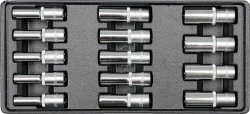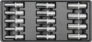 Zawartość zestawu: nasadka sześciokątna długa x14 (1/2" (12.7 mm): 8 mm, 9 mm, 10 mm, 11 mm, 12 mm, 13 mm, 14 mm, 15 mm, 16 mm, 17 mm, 18 mm, 19 mm, 20 mm, 21 mm)