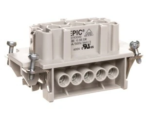 Wkłady złącza wyprodukowane w zakładach firmy Lapp Kabel są najwyższej jakości aparatami. Prezentowana tutaj wersja wkładu prawidłowo działa w temperaturze sięgającej od -40 oC do +100 oC. Znamionowe napięcie jest równe 500 V. Napięcie udarowe jest równe 6 kV. Prąd znamionowy sięga w tym przypadku 16 A. Stopień zanieczyszczenia, jakim charakteryzuje się to urządzenia wynosi 3. Urządzenie jest szerokie na 34 mm. Jego wysokość liczy 31,5 mm, a długość wynosi 64 mm. Aparaturę wyposażono w 10 styków w modelu gniazda pokrytych srebrem oraz w 2 tory stykowe. Cały wkład wykonano z tworzywa sztucznego. Dzięki temu jest odporny na działanie czynników zewnętrznych, jak wilgoć i pył, dlatego może być stosowane w pomieszczeniach i poza nimi. Informuje o tym stopień ochrony oznaczony symbolem IP65. Instalacja przy obwodzie głównym będzie łatwa i szybka dzięki zastosowaniu śrub mocujących. Posługiwanie się nimi w przypadku tego urządzenia zaleca sam producent. Sprzęt tego typu posiada blokadę. Przekrój przyłączanego przewodu linkowego z końcówką tulejkową i bez takiej końcówki oraz przewodu jednodrutowego, a także wielożyłowego sięga od 0,5 mm2 do 2,5 mm2.