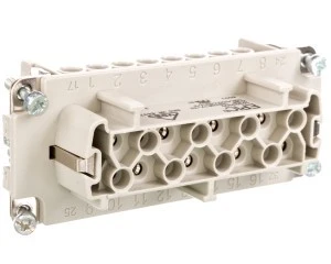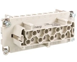Innowacyjna kolekcja EPIC H-BE została zaprojektowana i wyprodukowana przez najwyższej klasy specjalistów współpracujących ze znaną i docenianą na całym świecie marką Lapp Kabel - na rynku od 1999 roku. Częścią wspomnianej linii jest między innymi prezentowany wkład złącza. Wyposażono go w 16 styków i w dwa tory stykowe. Należy zaznaczyć, że są to praktyczne styki typu gniazda. Należy zauważyć, że styki zostały umieszczone pod kątem 180°. Rodzajem połączenia elektrycznego zastosowanym w tym osprzęcie jest połączenie śrubowe. Nie bez znaczenia dla użytkowania tego osprzętu są jego parametry elektryczne. Warto je znać chociażby ze względów bezpieczeństwa. Wartość napięcia znamionowego wynosi 500 V, a kolei wartość prądu znamionowego jest równa 16 A. Z kolei znamionowe napięcie udarowe wynosi 6 kV. Temperatura, przy jakiej pracuje osprzęt waha się od - 40 do 100 °C. Z równą starannością zadbano o dobór jak najwyższej jakości materiału, jakiego użyto do wykonania tego osprzętu, Jest to najwyższej jakości sztuczne tworzywo. Jego zaletą jest fakt, że jest wyjątkowo odporne na ścieranie i na zarysowania. Styki zostały ponadto pokryte srebrem.