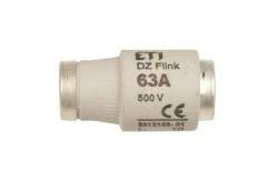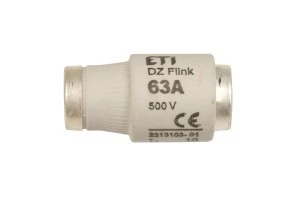 Wkładka topikowa typu DIII E33 63A 500V gF BIWTS stosowna jest przez instalatorów oraz majsterkowiczów do zabezpieczania instalacji elektrycznych przed skutkami zwarć i przeciążeń oraz przed porażeniem prądem elektrycznym. W sytuacji gdy wartość prądu przepływającego przez wkładkę zabezpieczającą obwód przekroczy wartość graniczną spowoduje przepalenie topika wkładki i w konsekwencji przerwanie obwodu. Ponowne włączenie zasilania może być dokonane po uprzednim sprawdzeniu powodu przepalenia wkładki, wyeliminowaniu przyczyny i wymienia uszkodzonej wkładki na nową. Naprawianie i ponowne wykorzystywanie uszkodzonych wkładek jest niedozwolone. Wkładka o numerze katalogowym 02313103 produkcji firmy ETI wyprodukowano na prąd znamionowy 63A i napięcie 500V. Wielkość wkładki oznaczana jest symbolem DIII co oznacza, że pasuje do gniazd bezpiecznikowych typu E33.