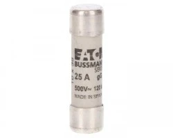 Wkładka bezpiecznikowa Eaton C10G25 to niskonapięciowy bezpiecznik cylindryczny 10×38 mm o prądzie znamionowym 25 A, przeznaczony do ogólnego zabezpieczenia obwodów przemysłowych przy napięciu do 500 V AC.