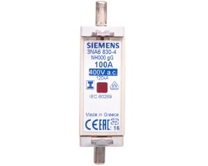 Wkładka bezpiecznikowa NH z izolowanymi zaczepami gG 100A AC 400V 3NA6830-4