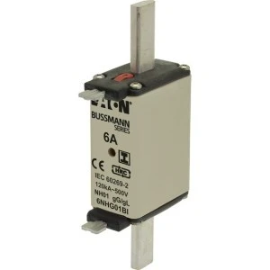 Wkładka bezpiecznikowa, nożowa, LV, 6A, AC 500 V, NH01, gL/gG, IEC, podwójny wskaźnik, uchwyty izolowane, 6NHG01BI /3szt./