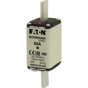 Wkładka bezpiecznikowa, nożowa, LV, 80 A, AC 690 V, NH1, gL/gG, IEC, podwójny wskaźnik, uchwyty izolowane 80NHG1BI‑690 /3szt./