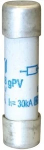 Wkładka topikowa CITEL / JEAN MUELLER DC 10x38 12A Najważniejsze parametry: Typ: gPV, Wymiary (mm): 10x38, Napięcie znamionowe Un(V): 1000, Zwarciowa zdolność wyłączania DC(kA): 30, Prąd znamionowy: 12 A, Całka Joule`a przedłukowa I²t [A²t]: 22, Całka Joule`a wyłączania I²t [A²s]: 73, Straty mocy Pn (W): 1,9.