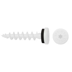 Wkręt do izolacji IPS-H biały jest wkrętem specjalnym przeznaczonym do bezpośredniego mocowania do płyt izolacyjnych z włókien drzewnych i obwodowych paneli izolacyjnych. Służy do mocowania profili ściennych, blach, profili ochronnych podstawy, maskownic, czujników ruchu, lamp, znaków itp. Bez mostków termicznych. Cecha szczególna: Krótki wkręt IPS-H o długości 55 mm doskonale nadaje się do izolacji o grubości od 60 mm.