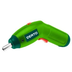 Wkrętak bateryjny VERTO (nr ref. 50G017), zasilany czterema bateriami AA 1.5V. Prędkość obrotowa 180 min?1 pozwala na efektywne wkręcanie oraz wykręcanie z materiałów o zróżnicowanej twardości. Narzędzie posiada sześciokątny magnetyczny uchwyt 1/4"" - wymiana końcówek przebiega błyskawicznie, ponieważ odbywa się bez wykorzystania narzędzi. Posiada ergonomicznie ukształtowaną rękojeść, zapewniającą komfortową pracę. Mała masa oraz ogólny dostęp do baterii czynią to urządzenie niezwykle mobilnym oraz łatwym w obsłudze. W zestawie z wkrętakiem znajdują się: bity - 11 szt oraz 4 baterie AA, co czyni wkrętak gotowym do pracy zaraz po wyjęciu z opakowania. Zgodność z europejskimi standardami bezpieczeństwa zapewnia certyfikat CE. Marka VERTO oferuje asortyment elektronarzędzi i akcesoriów dla każdego majsterkowicza.