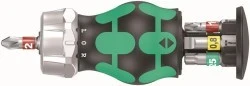 środkowym położeniu). Zawiera 6 ciągliwo-twardych uniwersalnych bitów umieszczonych w magazynku w rękojeści. Silny magnes trwały