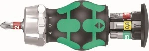 Wyjątkowo mały uchwyt do bitów do zastosowań w trudno dostępnych miejscach. Z funkcją grzechotki i drobnym uzębieniem