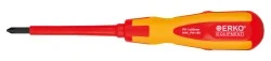 Wkrętak izolowany krzyżowy WIK Wkrętak izolowany krzyżowy do wkrętów z wgłębieniem krzyżowym Phillips/Pozidriv. Trzpień: czarny, izolowany. Część robocza: DIN 5264-PH/PZ, ISO 8764-PH/PZ, czerniona. Rękojeść: dwukomponentowa. Norma: DIN EN 60900